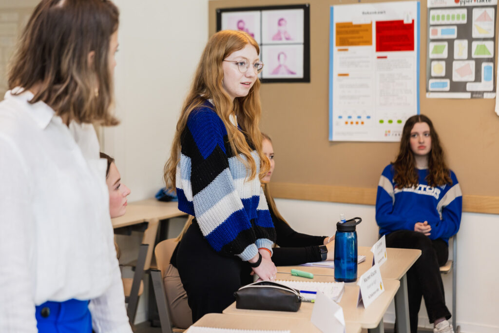 We werken daarom met uitdagende oefeningen en daaraan gekoppeld de theorie. Door het eerst te doen, is de theorie beter te snappen. De leerlingen kunnen tijdens de debatten dan ook gelijk laten zien wat ze hebben geleerd.